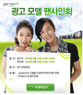 Setelah berkolaborasi dengan sangat menawan dalam drama hits tahun lalu "You’re Beautiful", aktor Jang Geun-seok dan Park Shin-hye datang bersama-sama lagi untuk penampilan CF ! Yups....Kedua makhluk manis ini baru aja melakukan syuting bareng untuk CF Garden5, tentu aja ini merupakan sebuah kejutan menyenangkan bagi para fans coz banyak yang ngarepin pasangan ini kembali dipertemukan.